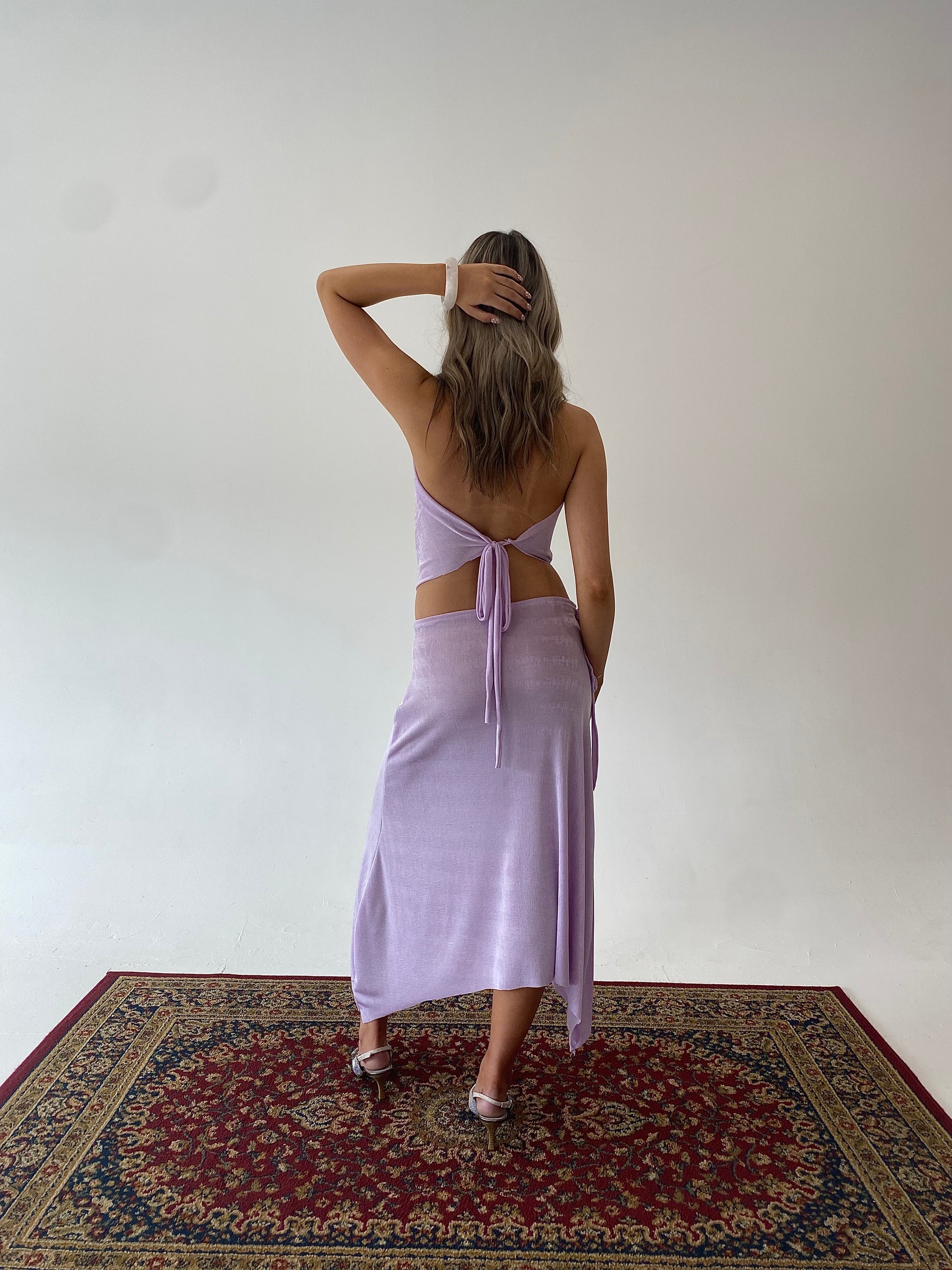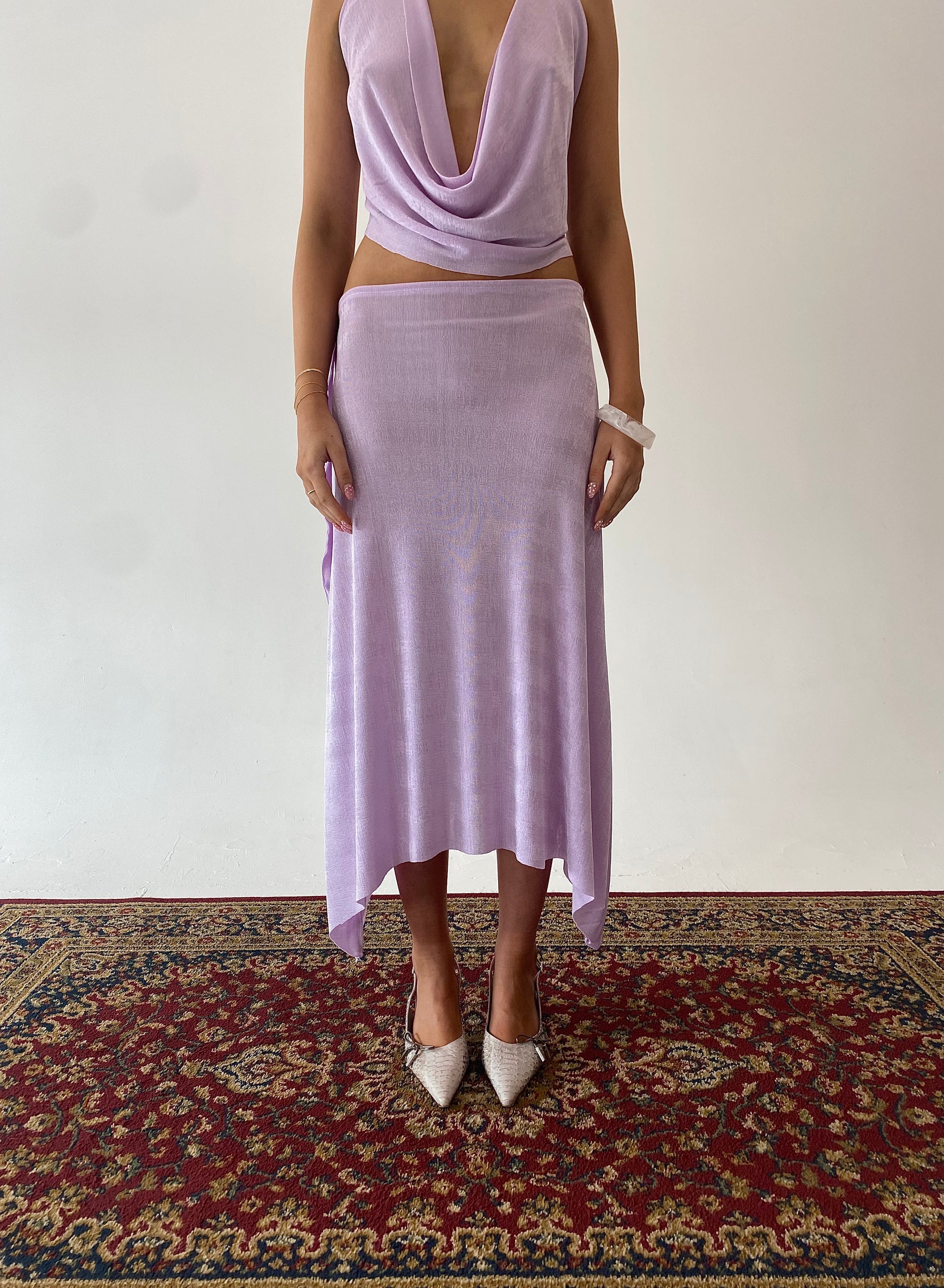 The Lavender Skirt has been created from a slinky stretch spandex jersey. With a draped design, stretchy waistband and a tie up side. Pair with our Lavender Top for the perfect fit.